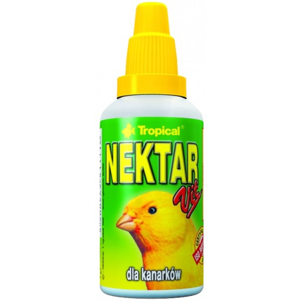 POUŽITIE: NEKTAR-VIT je vysoko energetický, stabilizovaný krmovinový doplnok vo forme vitaminizovaného nektáru pre kanárikov. Reguluje trávenie, posilňuje kondíciu a celkovú odolnosť organizmu kanárikov.